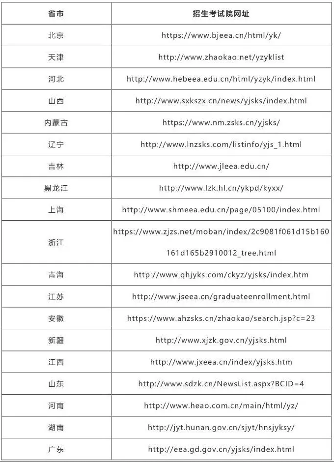 还有很大一部分院校会通过这个入口查分,给大家准备了全国的考试院官网网址。