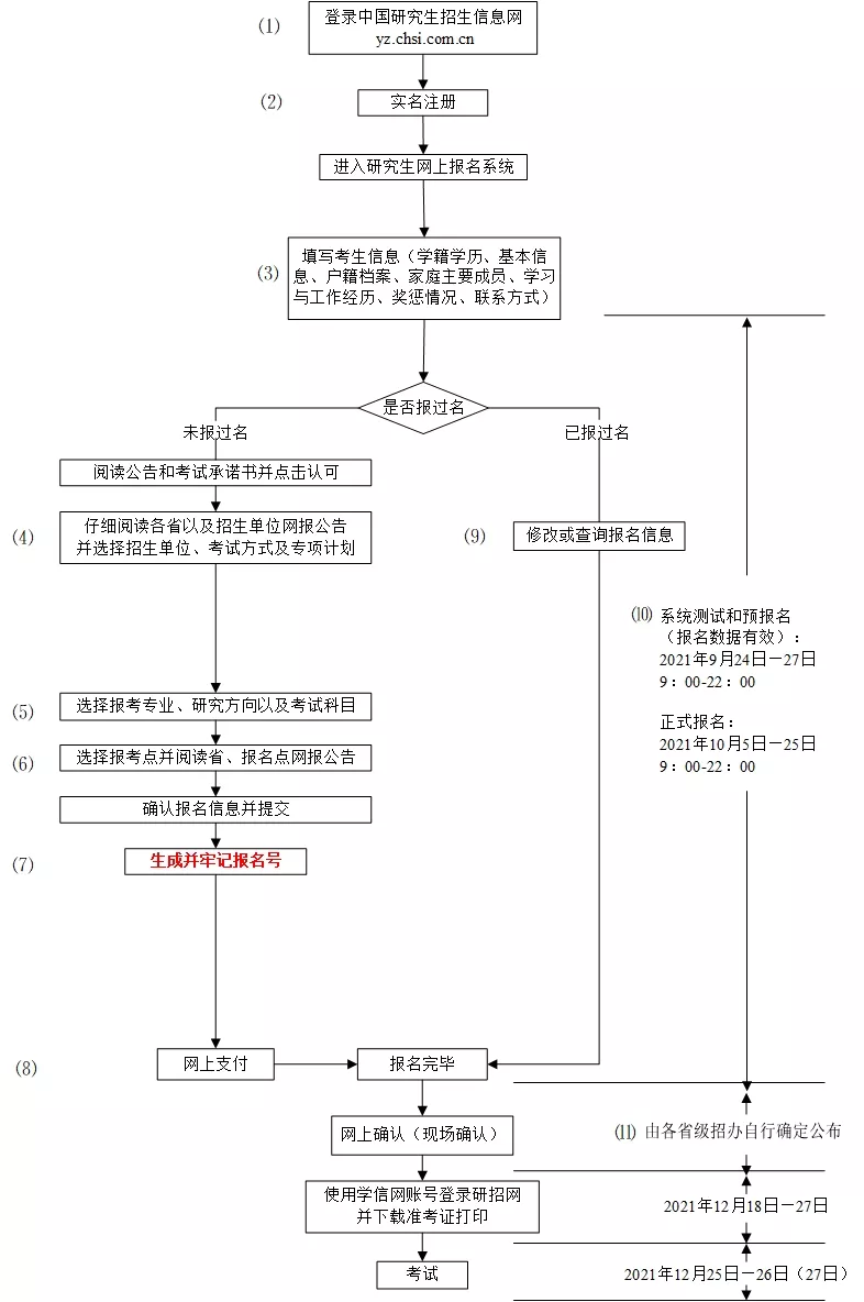 2022年研考网上报名时间为2021年10月5日至10月25日。报名时间为每天9:00-22:00。