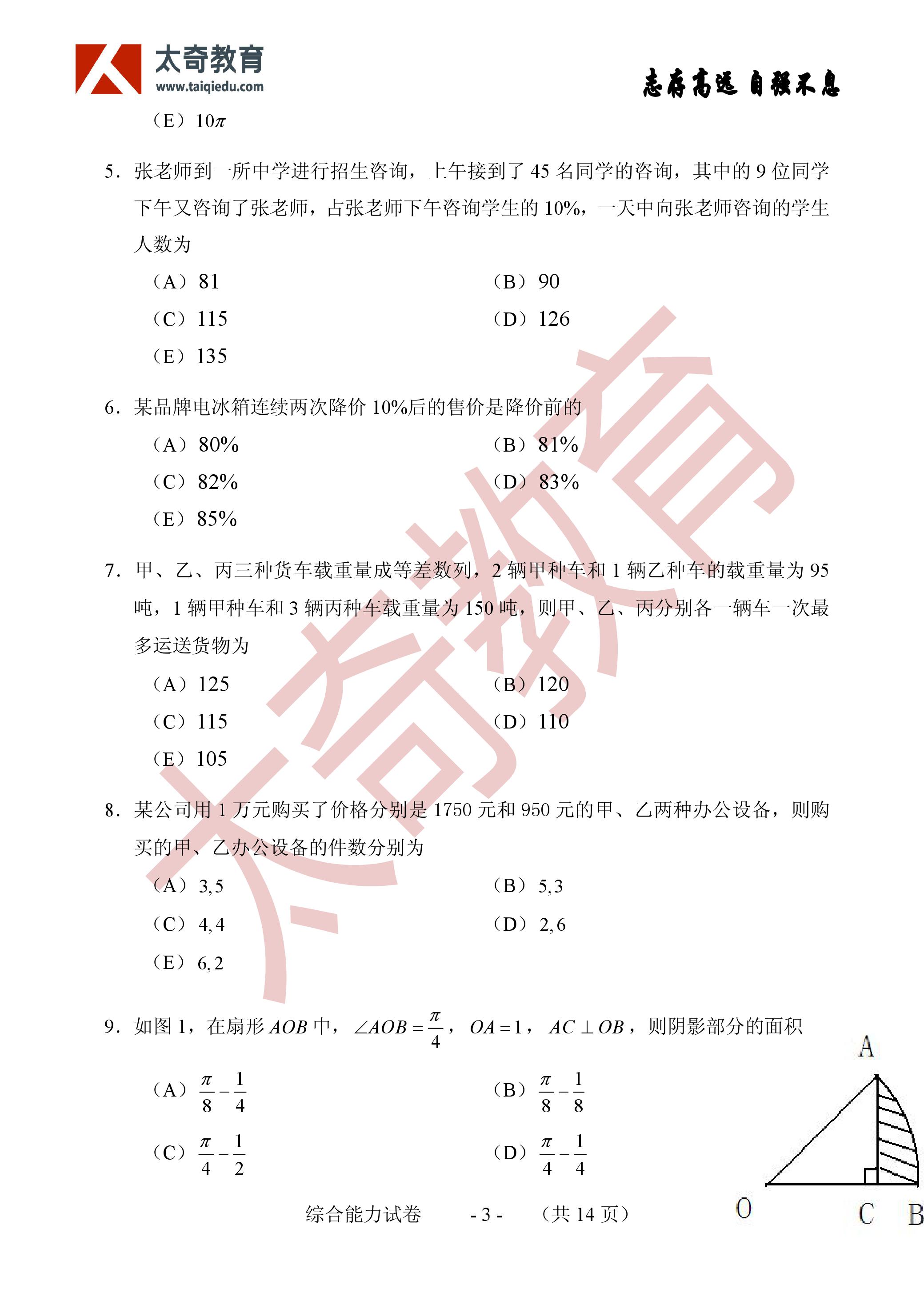 2017年MBA联考数学真题参考答案:问题求解(2)