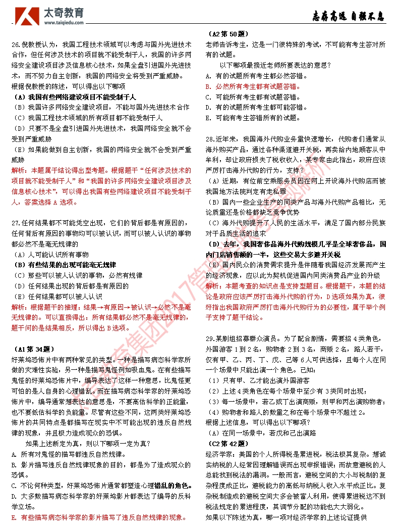 管理类硕士官方备考群,考生互动,择校评估,真题讨论 点击加入备考群>>2017全国管理类联考初试终于落下帷幕,太奇教育再度直接命中真题!