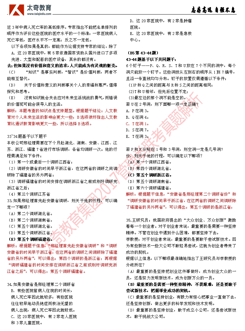 祝贺太奇教育2017管理类联考逻辑直接命中46分(3)