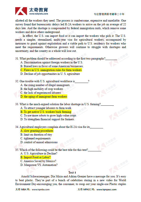 2019年管理类联考MBA英语二真题及参考答案(6)