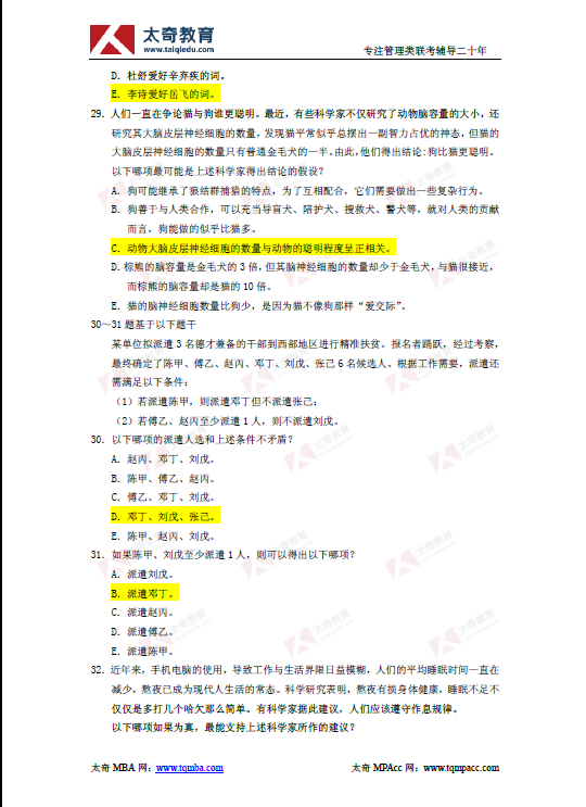 2019年管理类联考综合能力逻辑真题及参考答案(2)