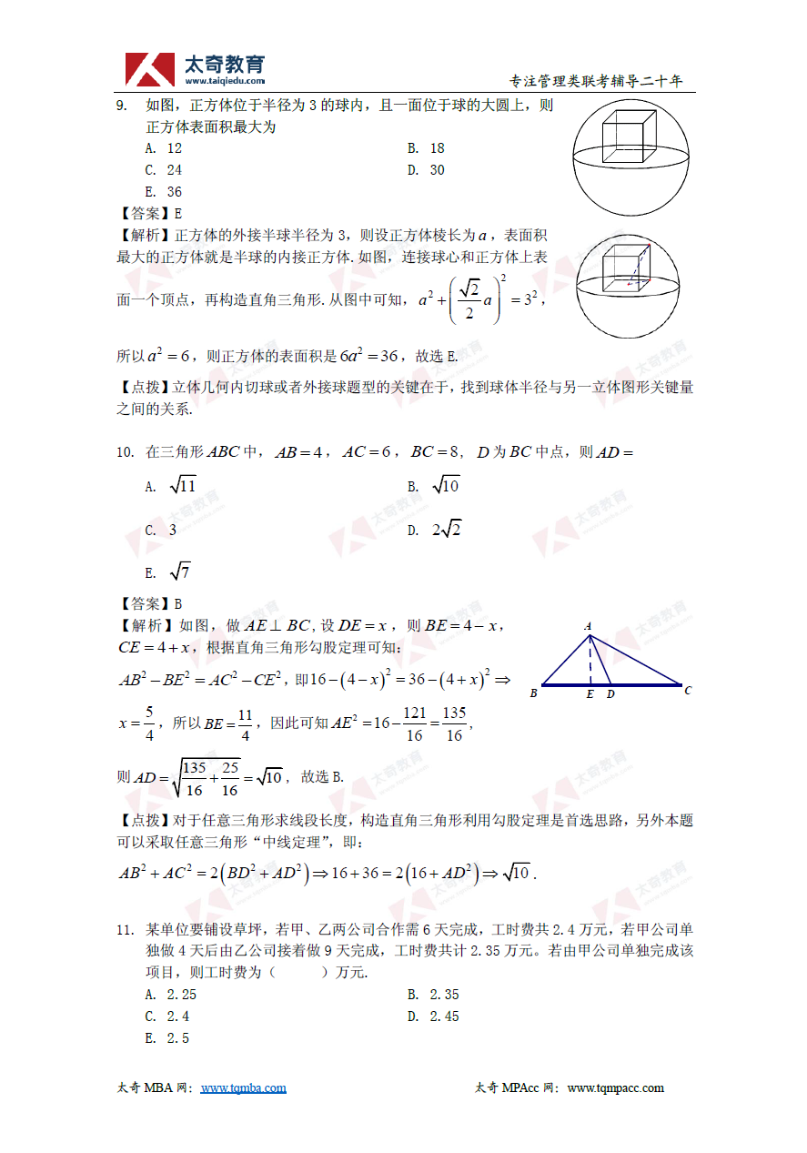 2019年管理类联考数学真题+解析(太奇官方版)(4)