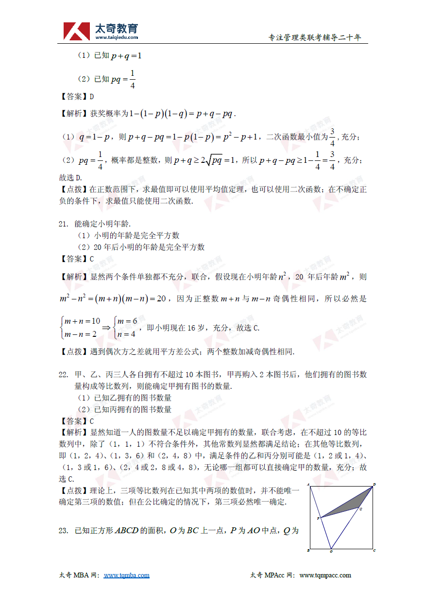 2019年管理类联考数学真题+解析(太奇官方版)(8)