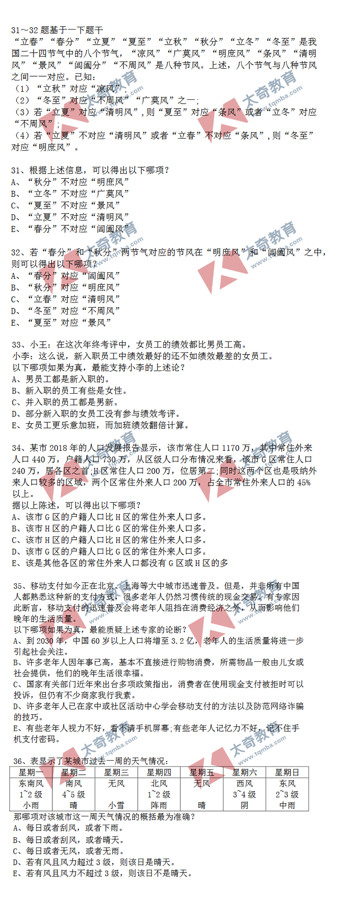 2020年MBA/MEM管理类联考逻辑真题(2)