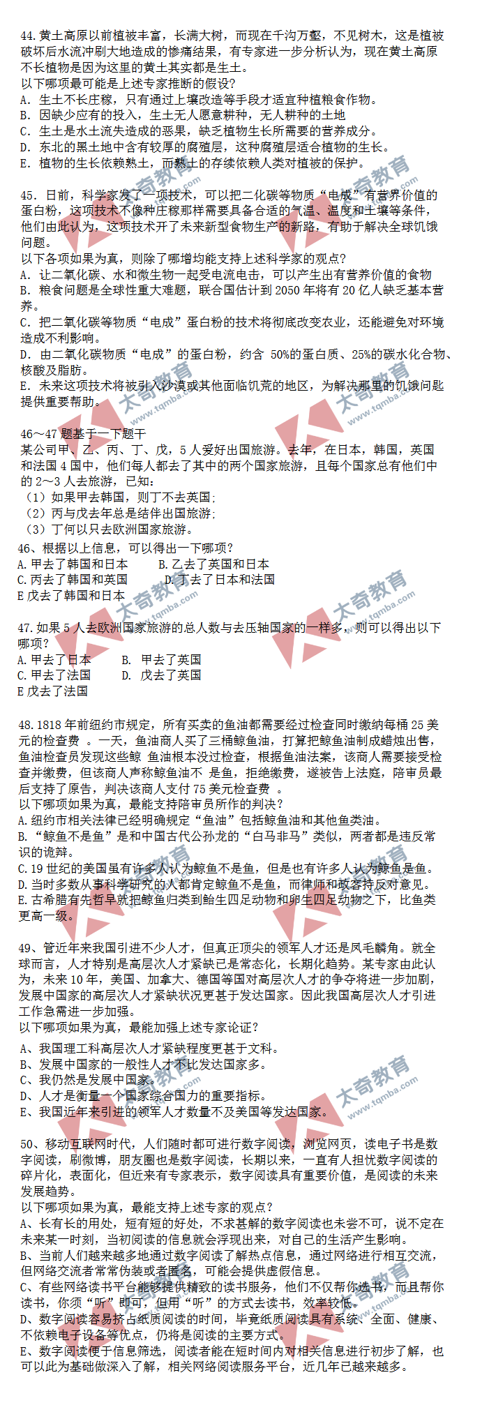 2020年MBA/MEM管理类联考逻辑真题(4)