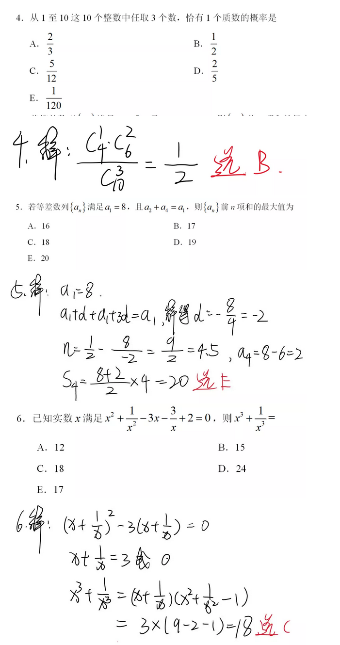 2020年MBA/MEM管理类联考数学真题答案及解析#e#