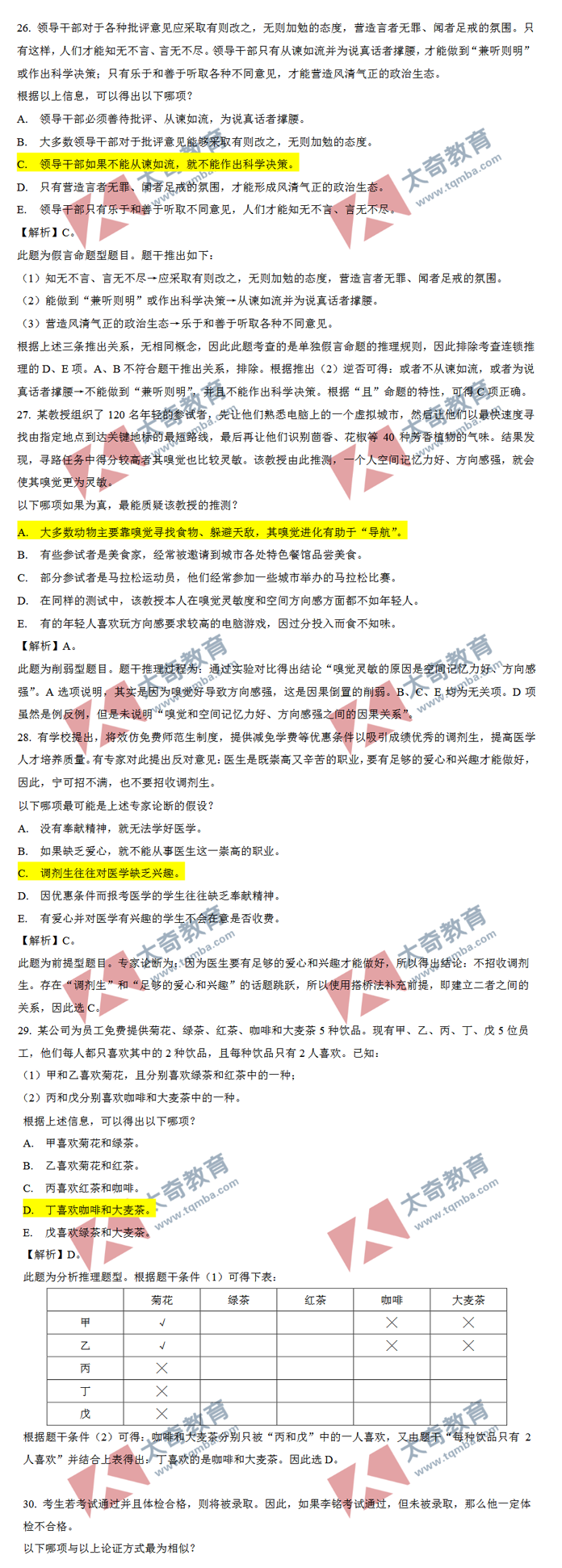 2020年MBA/MEM管理类联考逻辑真题解析