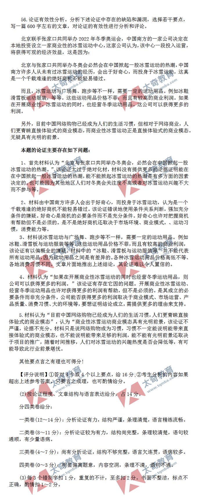 2020年MBA/MEM管理类联考写作真题范文