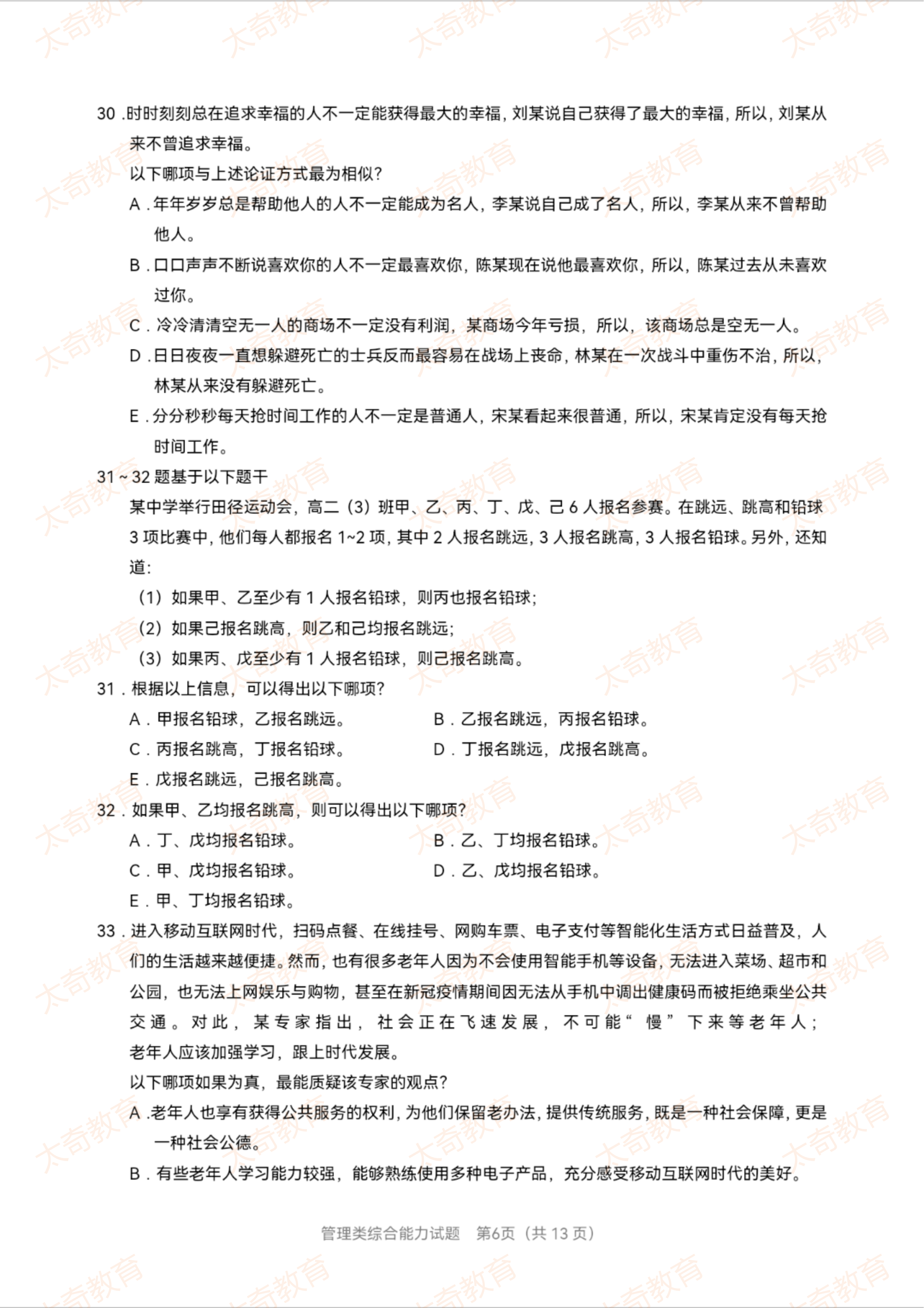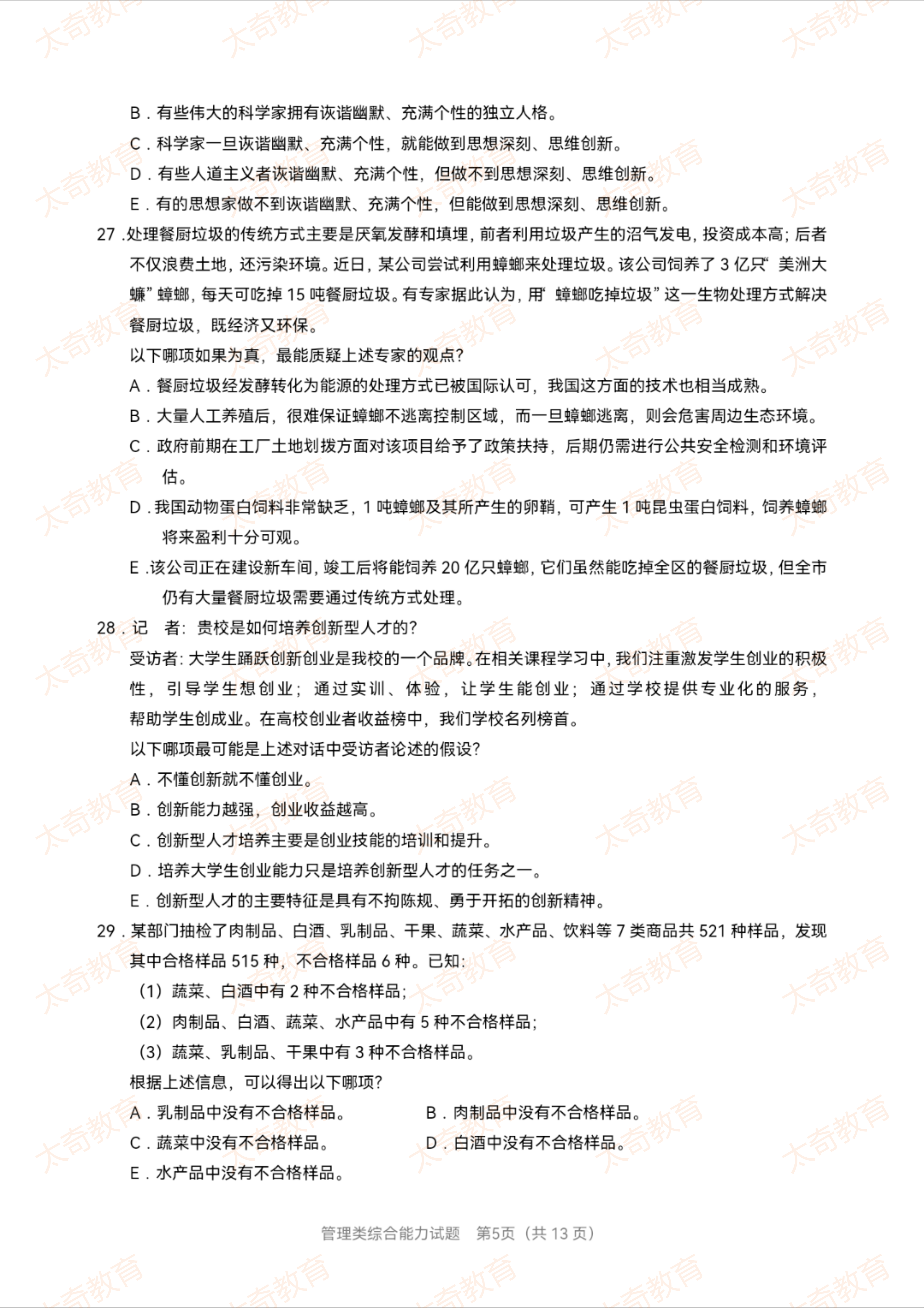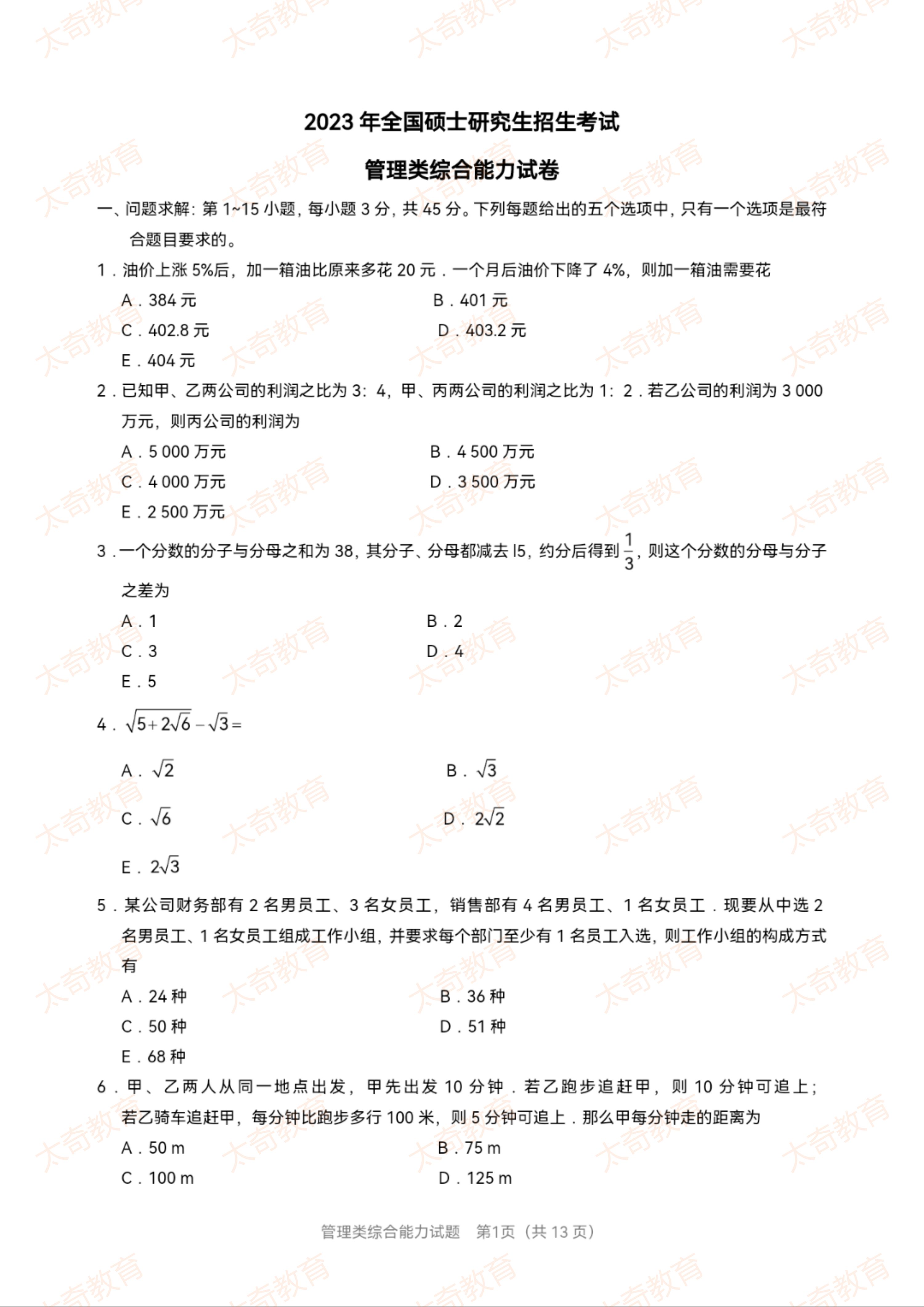 2023年MBA管理类综合真题(一)