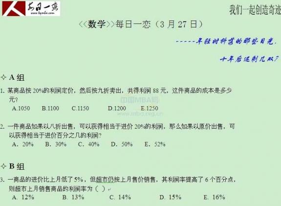 【太奇MBA 2014年3月27日】 MBA数学每日一练