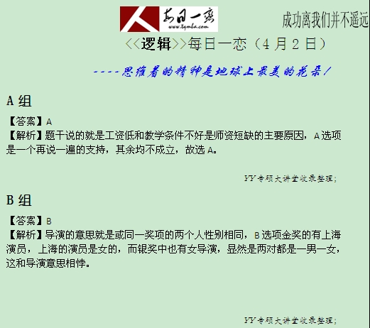 【太奇MBA 2014年4月3日】 MBA逻辑每日一练