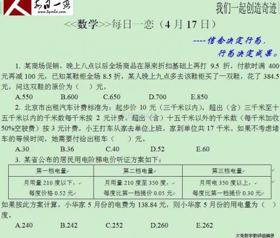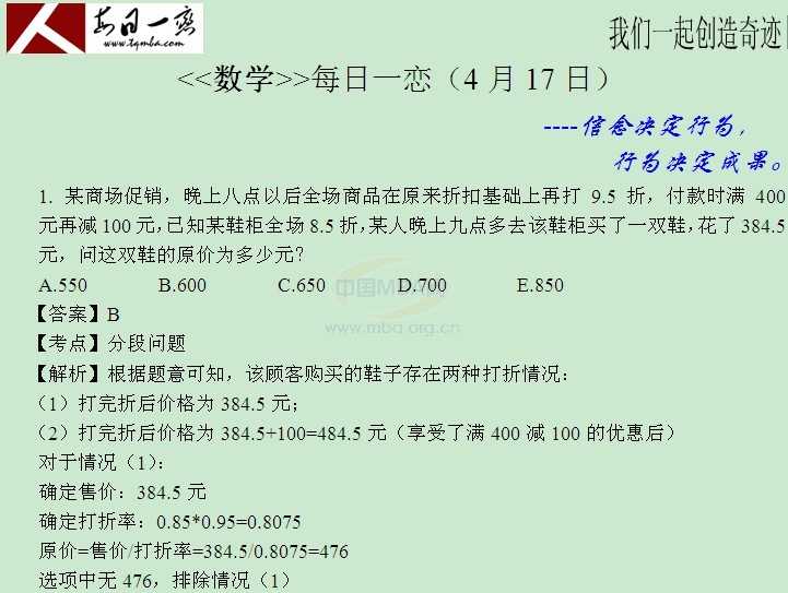 【太奇MBA 2014年4月17日】 MBA数学每日一练