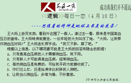 【太奇MBA 2014年4月18日】 MBA逻辑每日一练