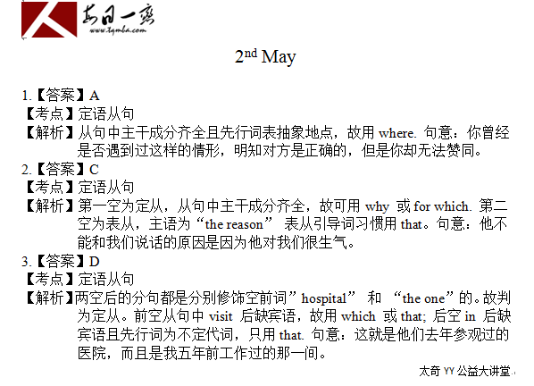 【太奇MBA 2014年5月2日】 MBA英语每日一练
