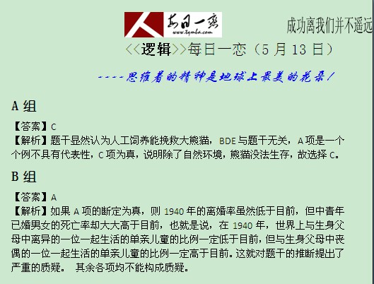 【太奇MBA 2014年5月14日】 MBA逻辑每日一练