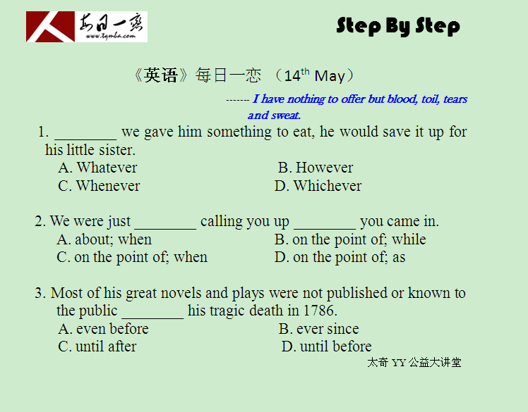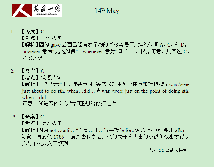 【太奇MBA 2014年5月14日】 MBA英语每日一练
