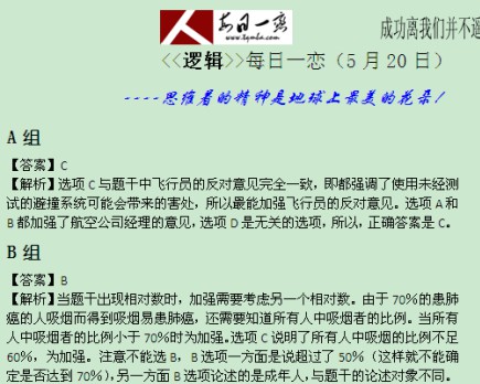 【太奇MBA 2014年5月20日】 MBA逻辑每日一练