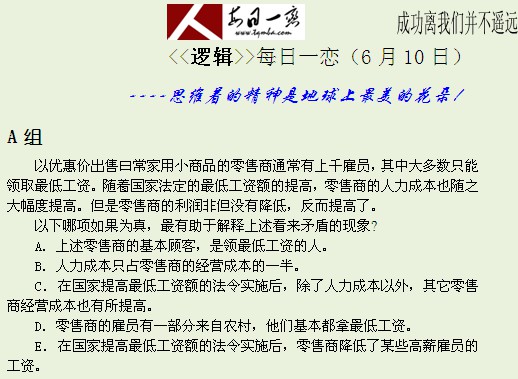【太奇MBA 2014年6月10日】 MBA逻辑每日一练