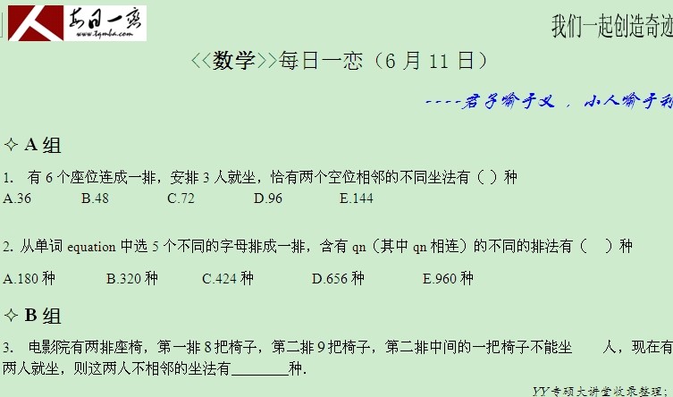 【太奇MBA 2014年6月10日】 MBA数学每日一练