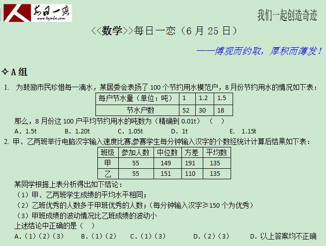 【太奇MBA 2014年6月25日】 MBA数学每日一练