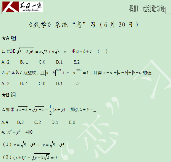 【太奇MBA 2014年6月30日】 MBA数学每日一练