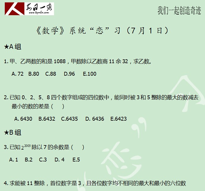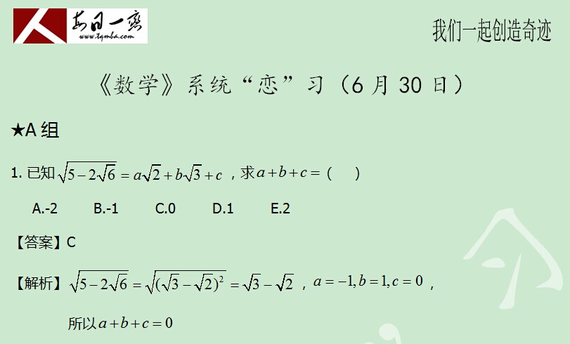 【太奇MBA 2014年7月1日】 MBA数学每日一练