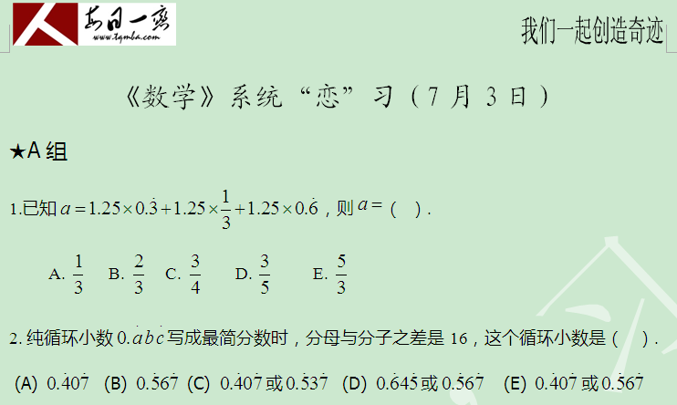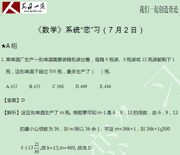 【太奇MBA 2014年7月3日】 MBA数学每日一练