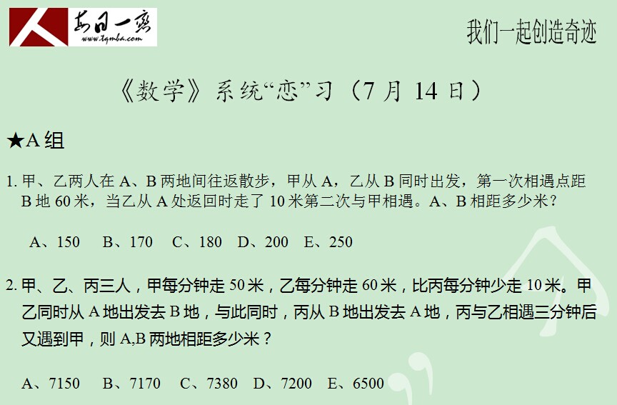 【太奇MBA 2014年7月14日】MBA数学每日一练