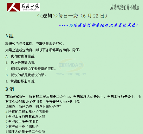 【太奇MBA 2015年6月22日】MBA逻辑每日一练