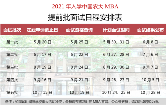 注:农大MBA是在北京MBA院校当中今年出政策的“领头羊”之一,从第一批面试6月8日开始一直到十月底最后一次准备时间长达5个月之久,也是给广大备考生们留足了充裕的时间。