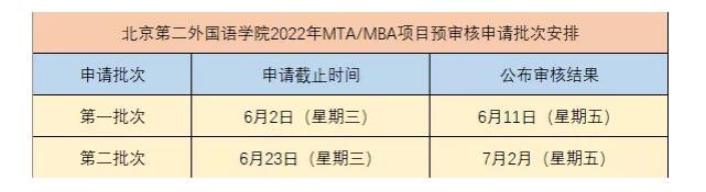 欢迎广大考生报考北京第二外国语学院MTA /MBA项目!为选拔更多优质生源,2022年我们将首次推行“申请审核”,通过审核的考生将安排预面试。