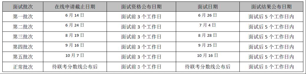 5. 在线申请日期对应了指定面试批次及相关安排,书面材料的提交和审核将统一在面试环节进行。