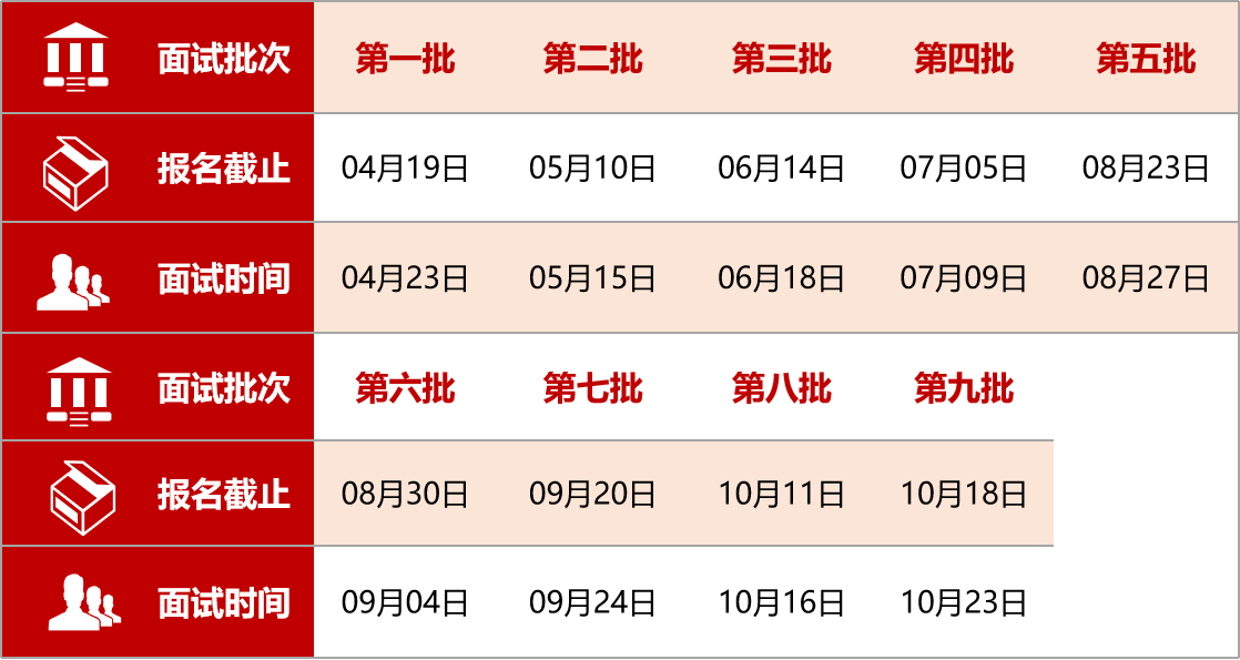 预审面试批次安排如下: