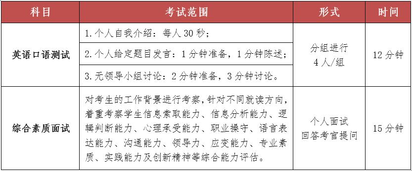 第四,提前面试中着重关注考生在投资、批判式思维、综合素质等方面的考核,加大面试成绩在最终总成绩中的比重。录取综合总成绩中,初试联考成绩占40%,提前面试或复试成绩占60%。