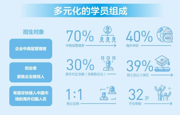 A:来自创新创业、金融与投资、文化产业、智能制造、大健康、高新科技行业,管理经验不少于9年的中高层管理者。