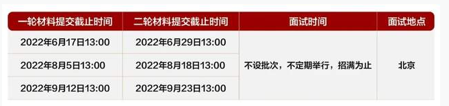 申请人必须在此之前在线填写材料,检查无误后直接在线提交。对申请人的材料进行评审后,不设批次、不定期举行面试,建议申请人尽早申请并提交申请材料。